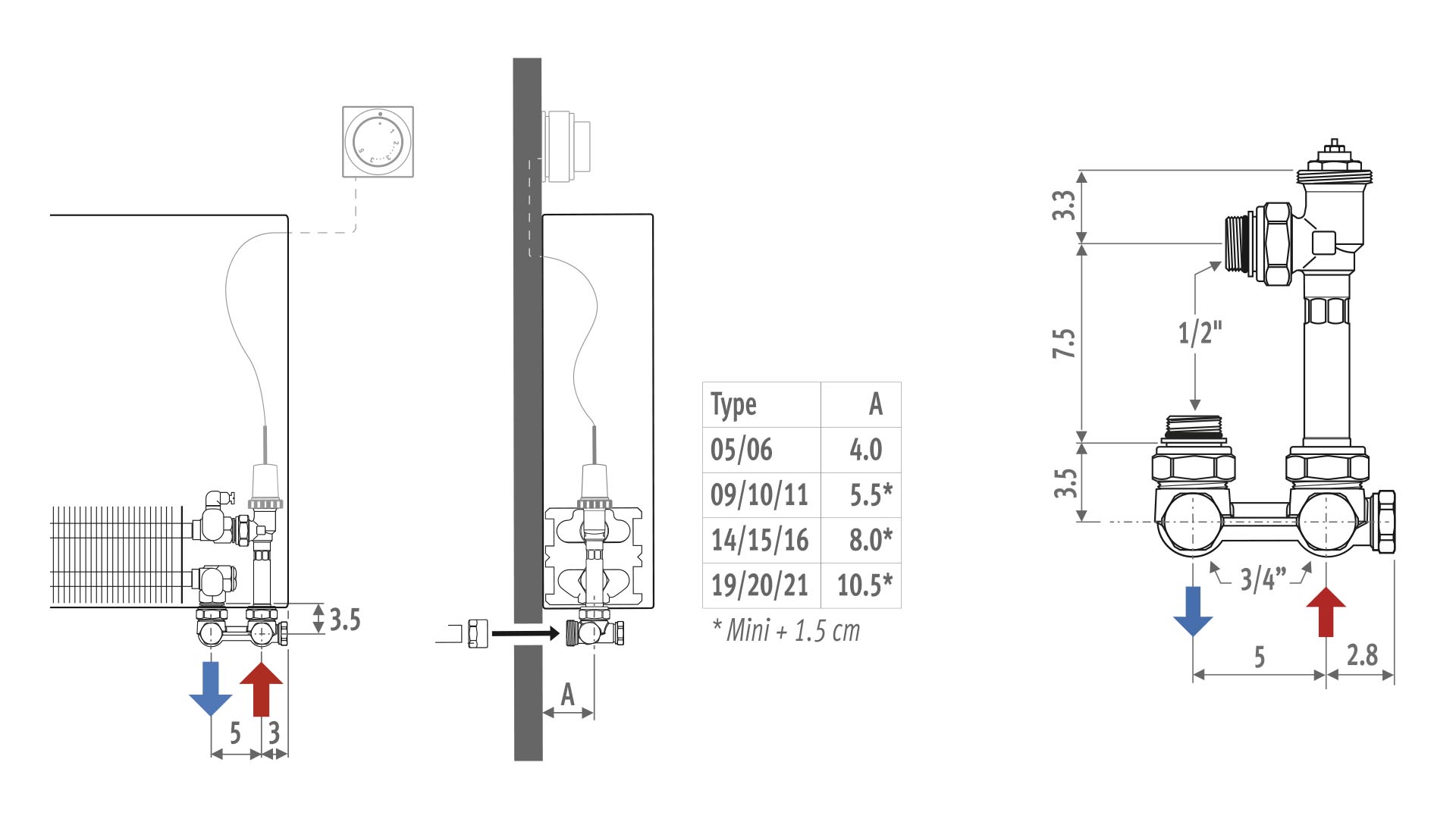 - Kv-waarde tweepijp: 0.10 tot 0.60 m³/u.