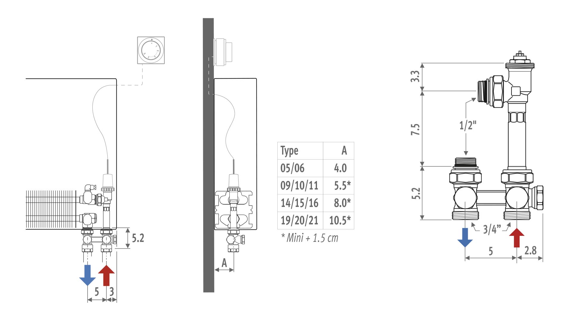 - Kv-waarde tweepijp: 0.10 tot 0.60 m³/u.