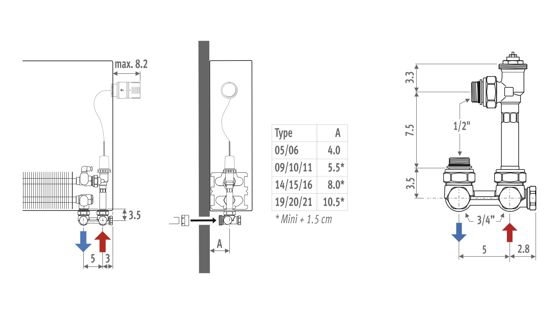 - éénpijp bypass regeling: 25% tot 100% debiet door radiator regelbaar