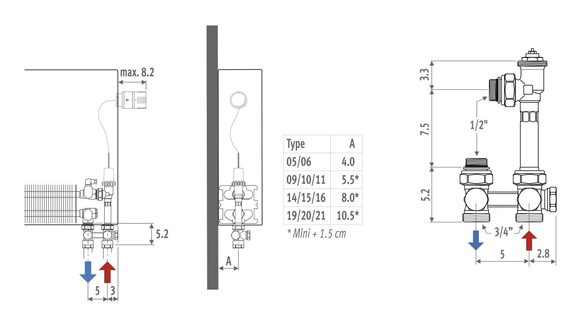 - éénpijp bypass regeling: 25% tot 100% debiet door radiator regelbaar