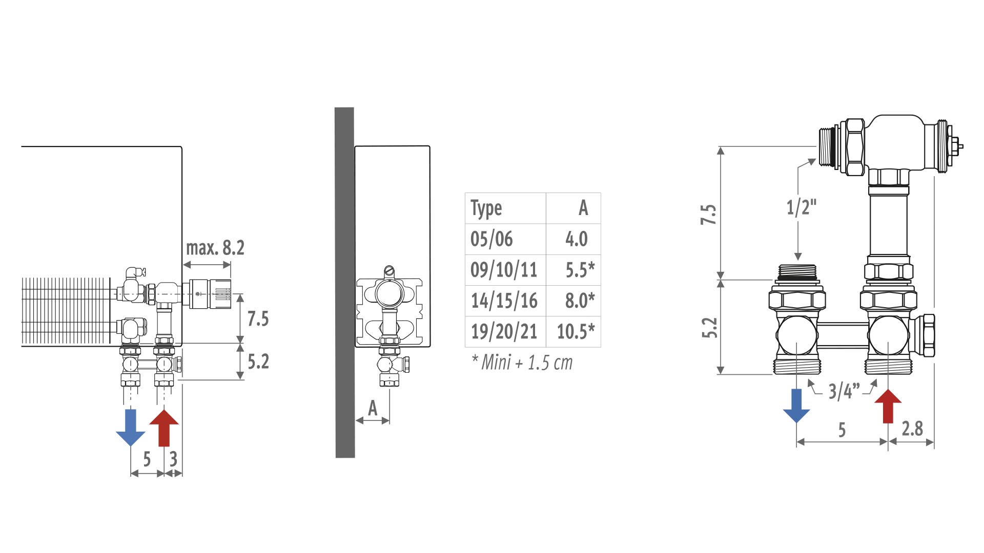 Ventiel, bediening en klemkoppelingen zijn inbegrepen in de prijs.