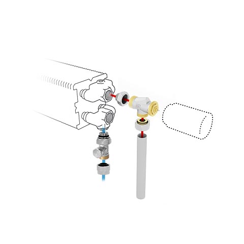 Bestelcode van de aansluitset aanvullen met de code van de klemkoppeling volgens de gebruikte buis en Ø