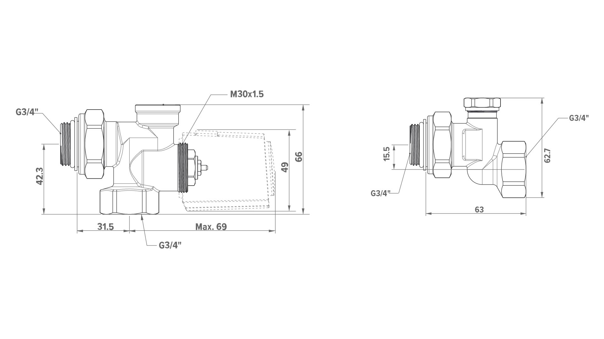 - Schroefdraad M30 x 1.5 (Heimeier compatibel)