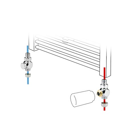 Adapter voor het ombouwen van thermostaatventielen met thermostaatkop, om te voorkomen dat koudwatertoevoer in de zomer door de thermostaatkop afgesneden wordt.