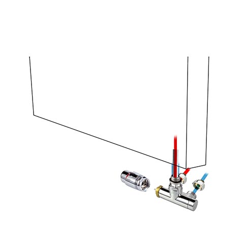 Adapter voor het ombouwen van thermostaatventielen met thermostaatkop, om te voorkomen dat koudwatertoevoer in de zomer door de thermostaatkop afgesneden wordt.