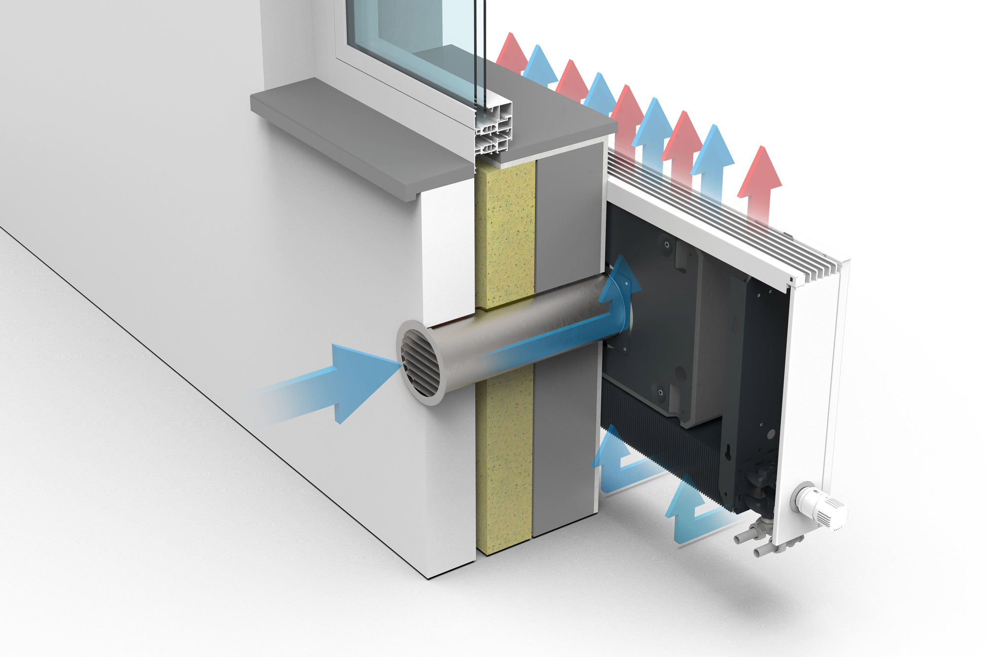 Oxygen2 zorgt op een energiezuinige manier voor ventilatie in woningen, kantoren of zorginstellingen. Het is een kant-en-klare ventilatie-unit. Optioneel kan Oxygen2 onzichtbaar ingebouwd worden in een Low-H2O radiator, waardoor één toestel voor ventilatie maar ook voor verwarming en/of koeling zorgt. Door de intelligente besturing met ingebouwde CO2-sensor wordt er in elke ruimte, afzonderlijk van elkaar, perfect geventileerd. De aangevoerde lucht komt rechtstreeks vanaf buiten via een muurdoorvoer en een efficiënt filtersysteem. Lange luchttoevoer kanalen zijn niet nodig. Daarnaast voldoet het systeem aan alle geluidseisen.