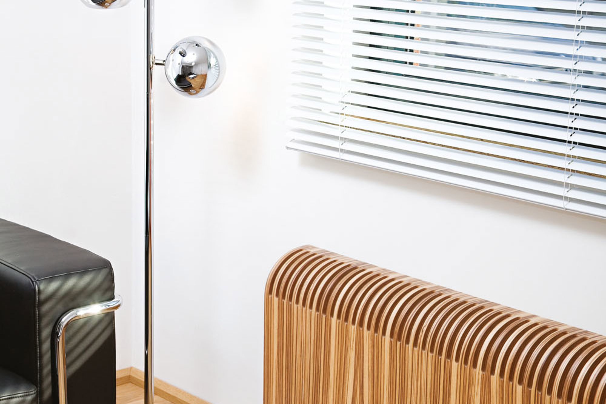 Onze allereerste radiator in hout, afgewerkt met het edelste fineer.