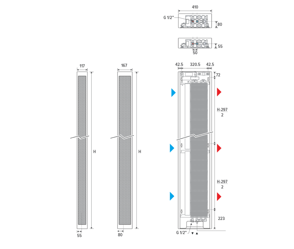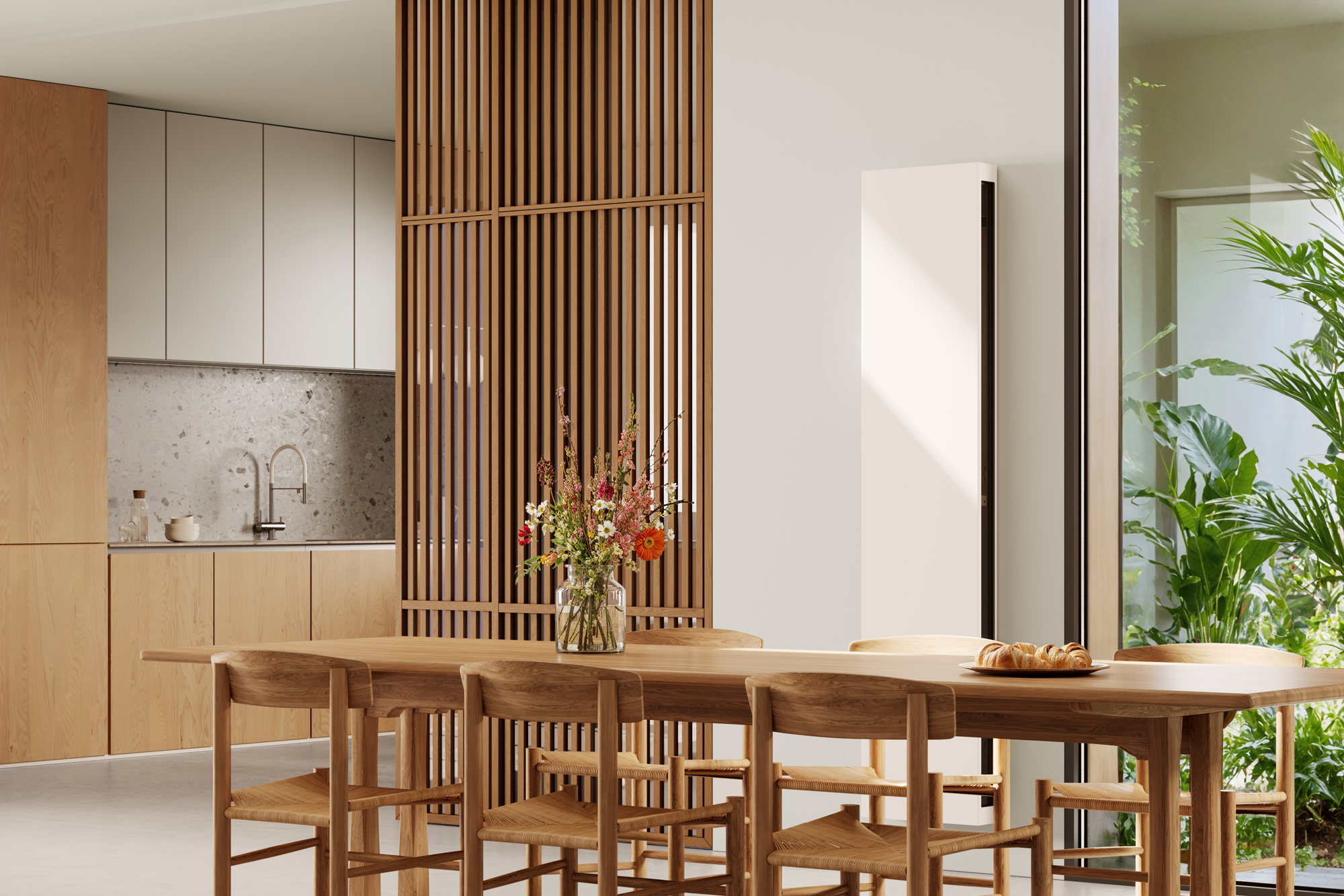 Vertilina Hybrid is de veelzijdige verticale Jaga-oplossing voor energiezuinige koeling en verwarming met lage watertemperaturen. Dankzij zijn hoge efficiëntie levert dit compacte toestel aangenaam en snel comfort, het hele jaar door. Het slanke, verticale ontwerp van deze hybride convector maakt plaatsing mogelijk op een klein muuroppervlak, ideaal voor ruimtes waar elke centimeter telt. Vertilina Hybrid brengt snelle installatie en betrouwbare prestaties samen in een compact, efficiënt en betrouwbaar afgiftesysteem.